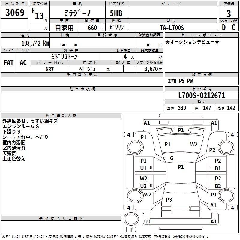 Все аукционы DAIHATSU MIRA GINO