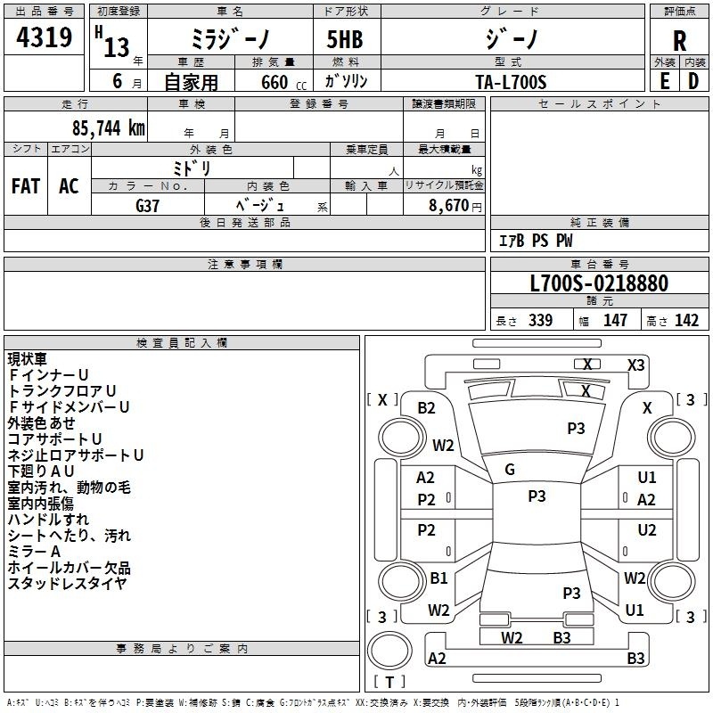 Все аукционы DAIHATSU MIRA GINO