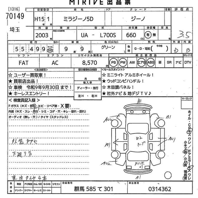 Все аукционы DAIHATSU MIRA GINO