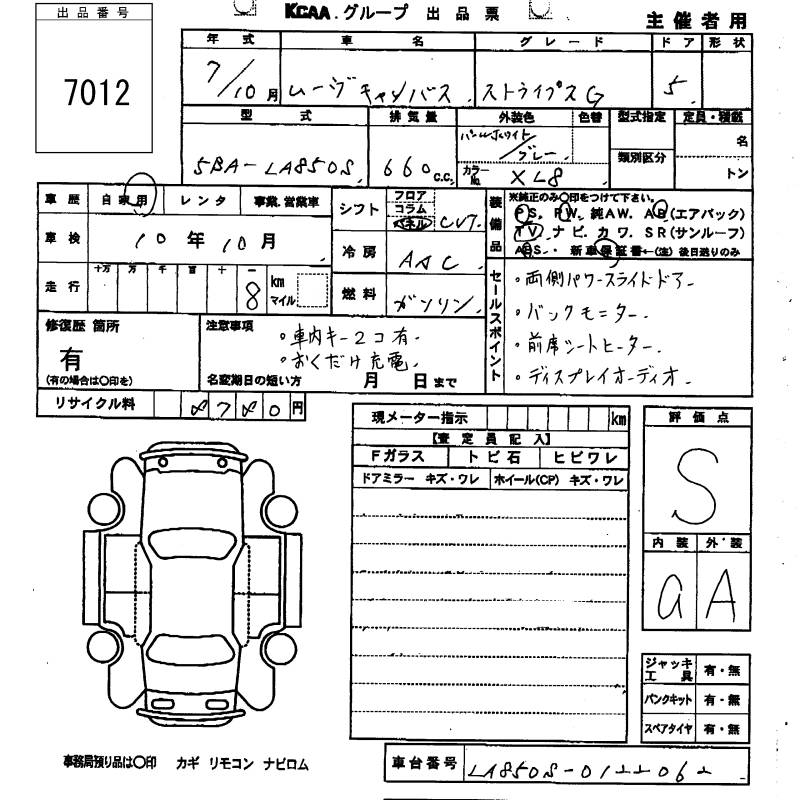 DAIHATSU MOVE CANBUS - лот 7012