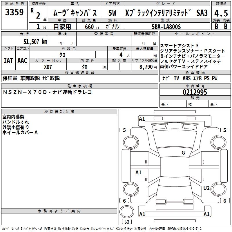 DAIHATSU MOVE CANBUS X BLACK INTERIOR LIMITED SA3 - лот 3359