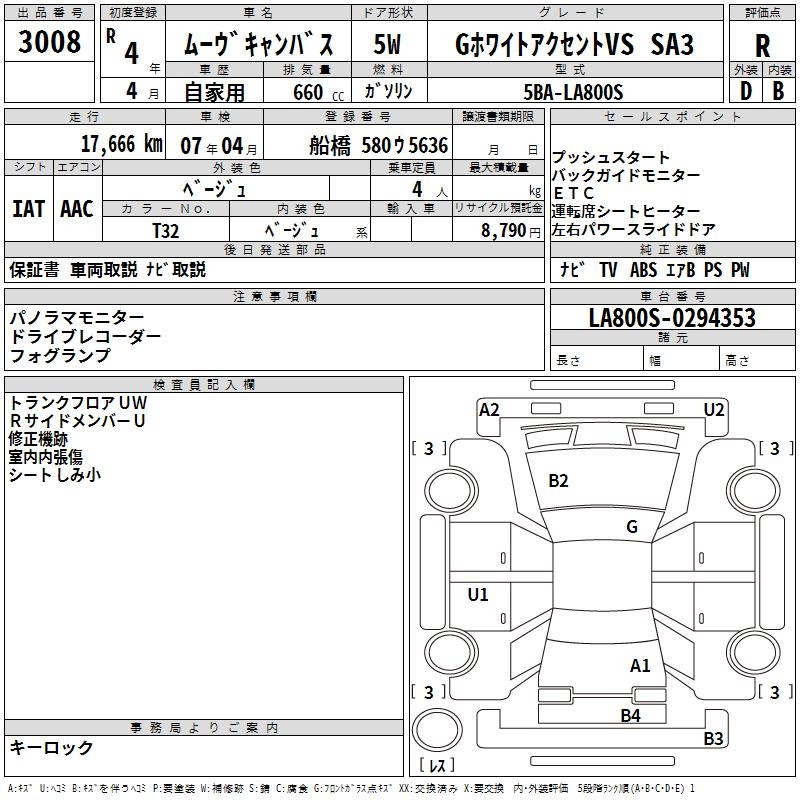 DAIHATSU MOVE CANBUS G WHITE ACCENT VS SA3 - лот 3008