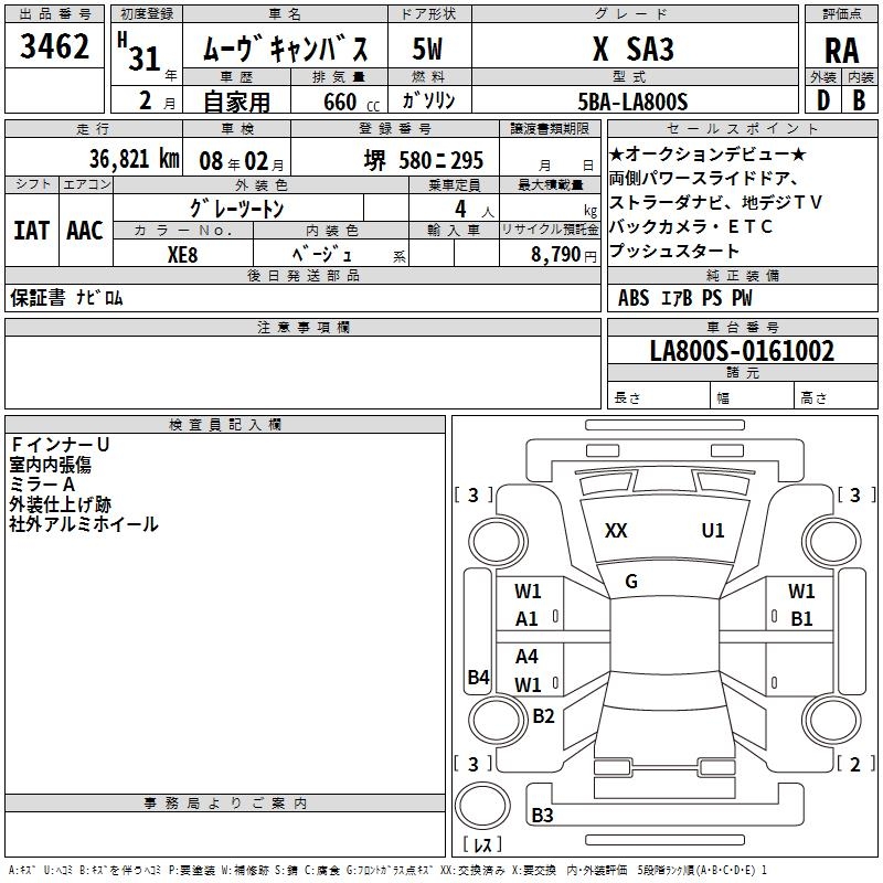 DAIHATSU MOVE CANBUS X SA3 - лот 3462