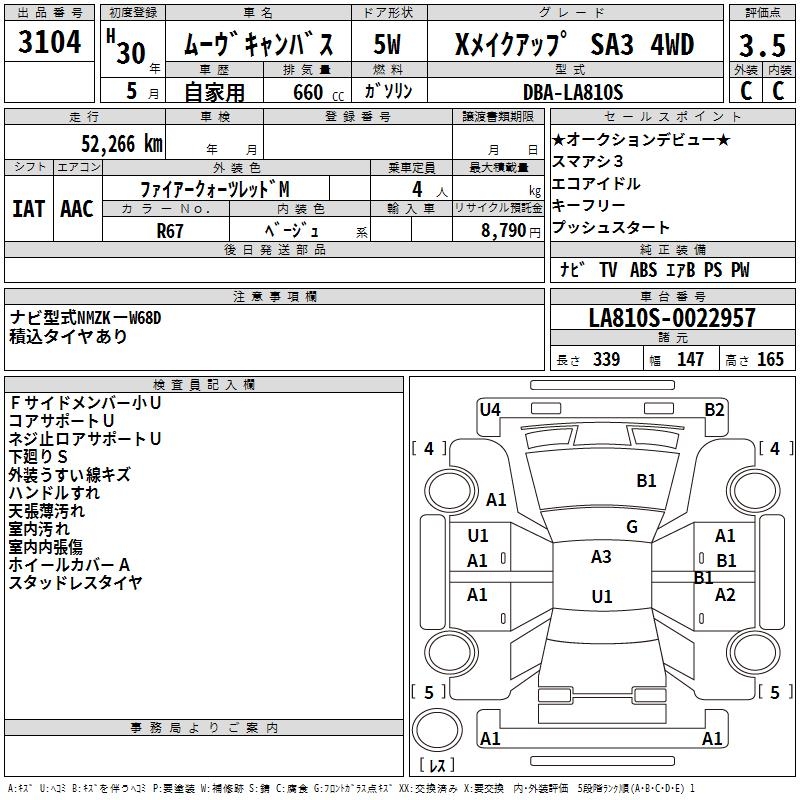 DAIHATSU MOVE CANBUS XMEIK UP SA3 4WD - лот 3104