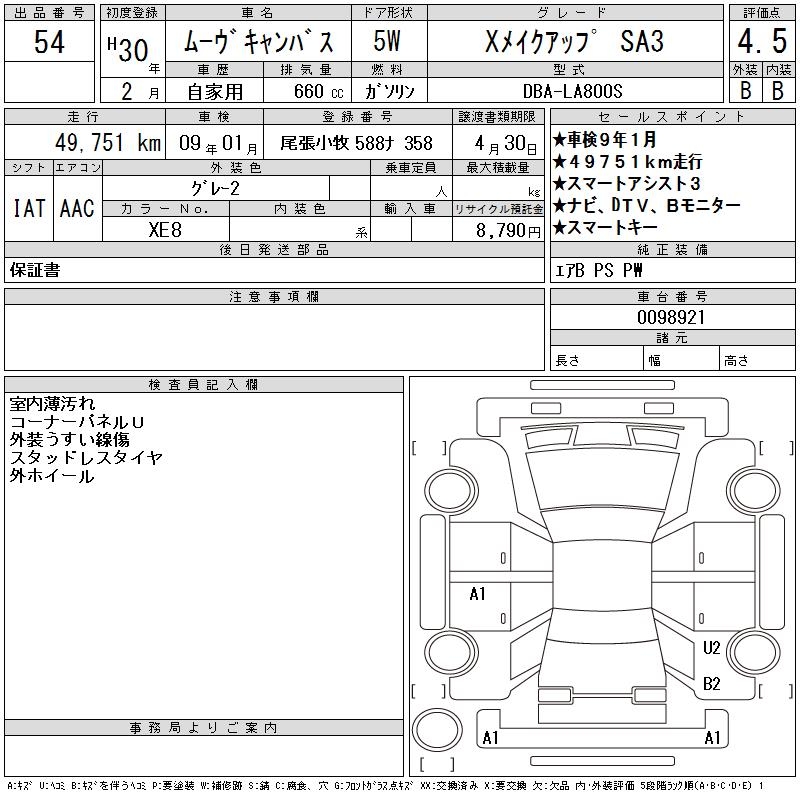 DAIHATSU MOVE CANBUS XMEIK UP SA3 - лот 54