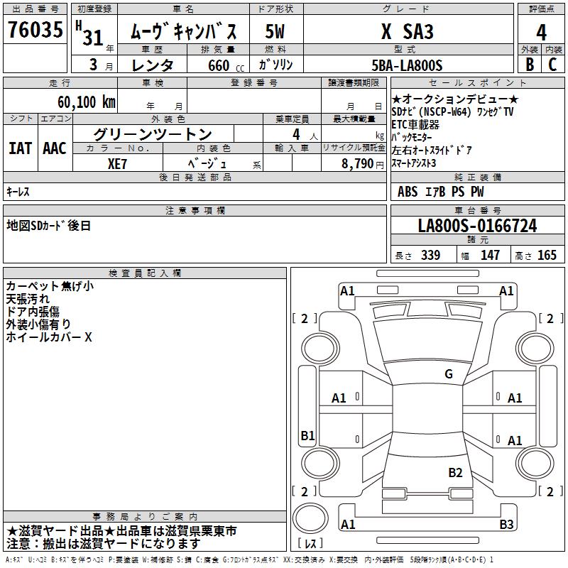 DAIHATSU MOVE CANBUS X SA3 - лот 76035