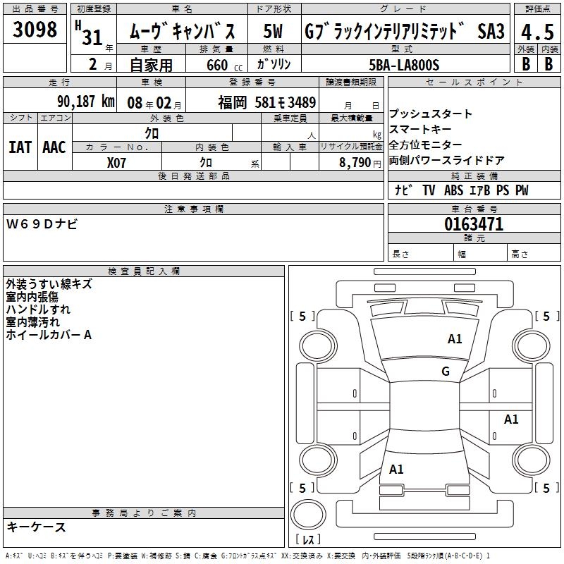 DAIHATSU MOVE CANBUS G BLACK INTERIOR LTD SA3 - лот 3098