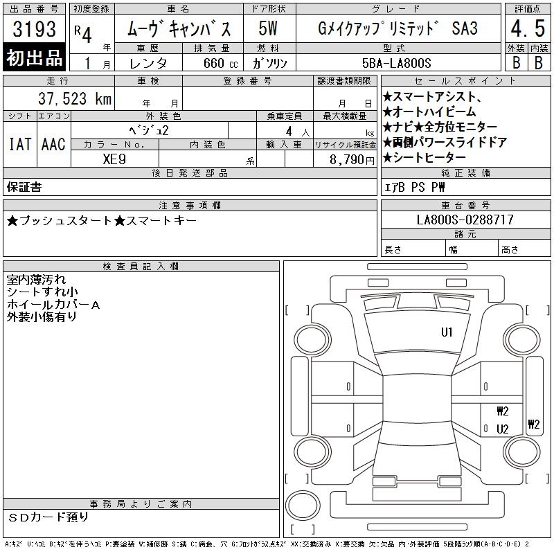 DAIHATSU MOVE CANBUS GMEIK UP LIMITED SA3 - лот 3193