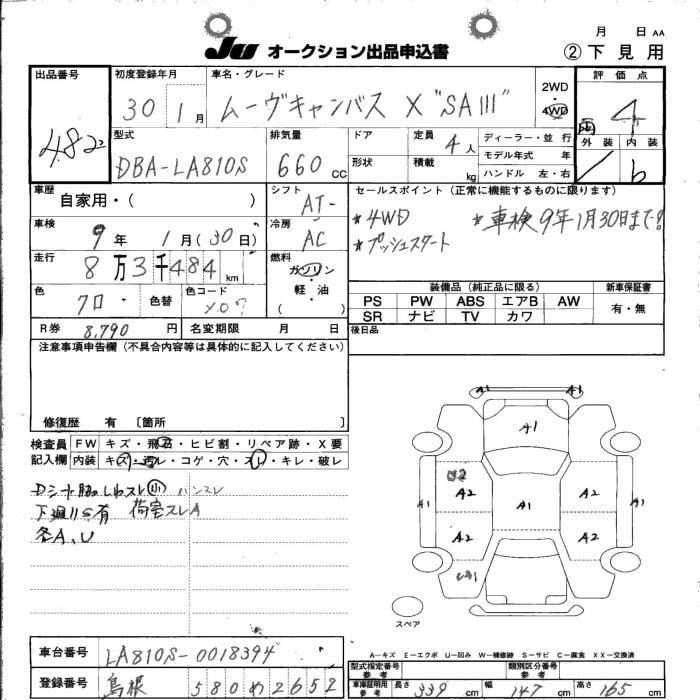 DAIHATSU MOVE CANBUS X SA3 4WD - лот 482