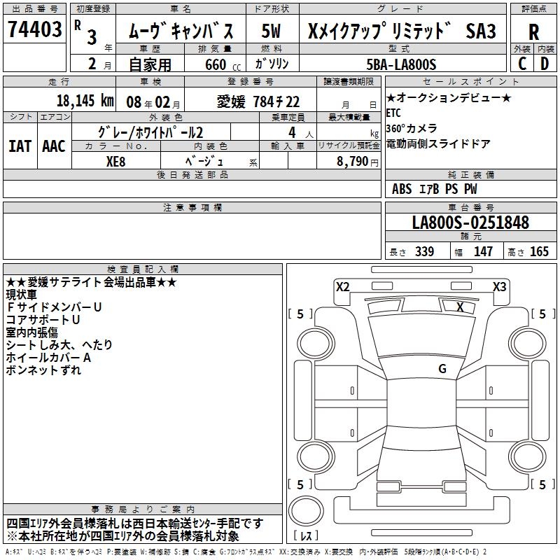 DAIHATSU MOVE CANBUS XMEIK UP LIMITED SA3 - лот 74403