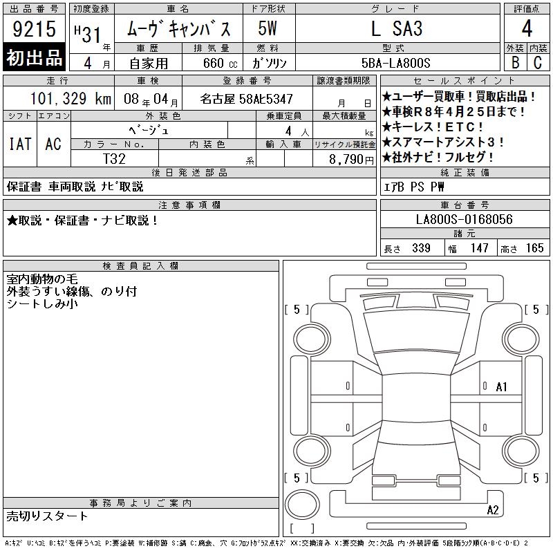 DAIHATSU MOVE CANBUS L SA3 - лот 9215