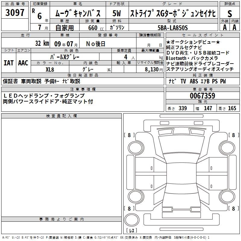 DAIHATSU MOVE CANBUS STRIPE SG TURBO ORIGINAL NAVI - лот 3097