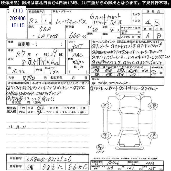 DAIHATSU MOVE CANBUS - лот 37180