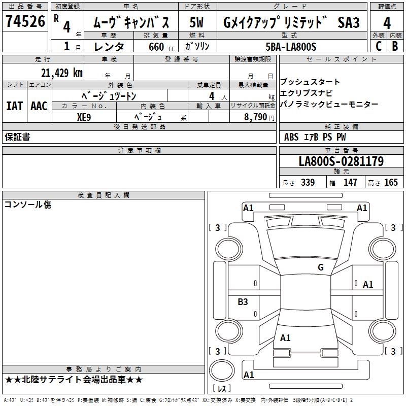 DAIHATSU MOVE CANBUS GMEIK UP LIMITED SA3 - лот 74526