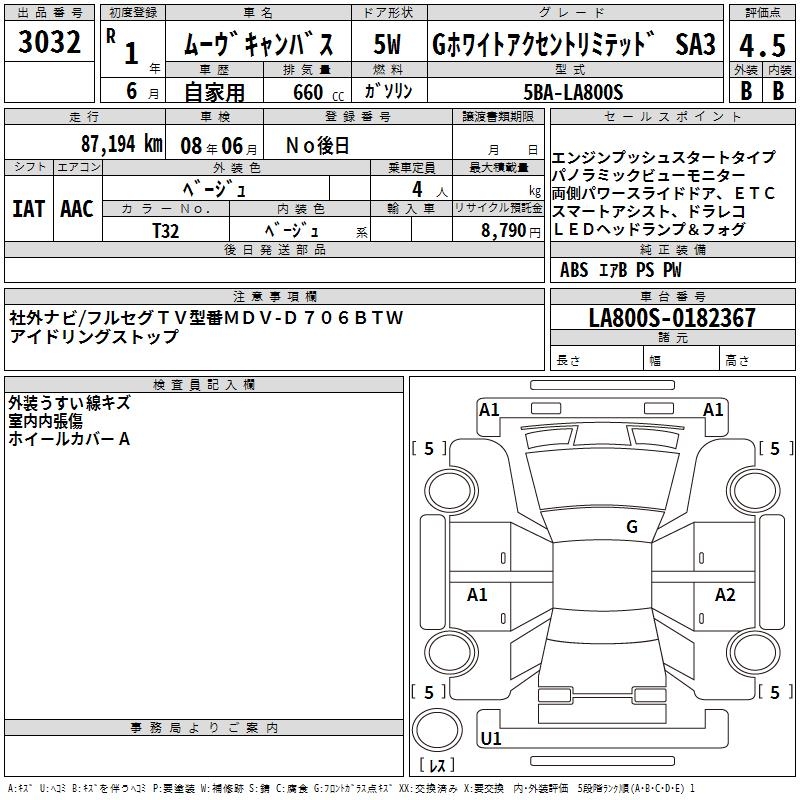 DAIHATSU MOVE CANBUS G WHITE ACCENT LIMITED SA3 - лот 3032