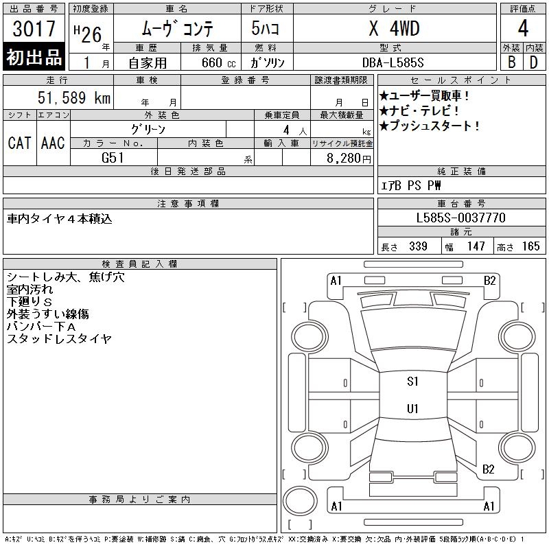 DAIHATSU MOVE CONTE X 4WD - лот 3017