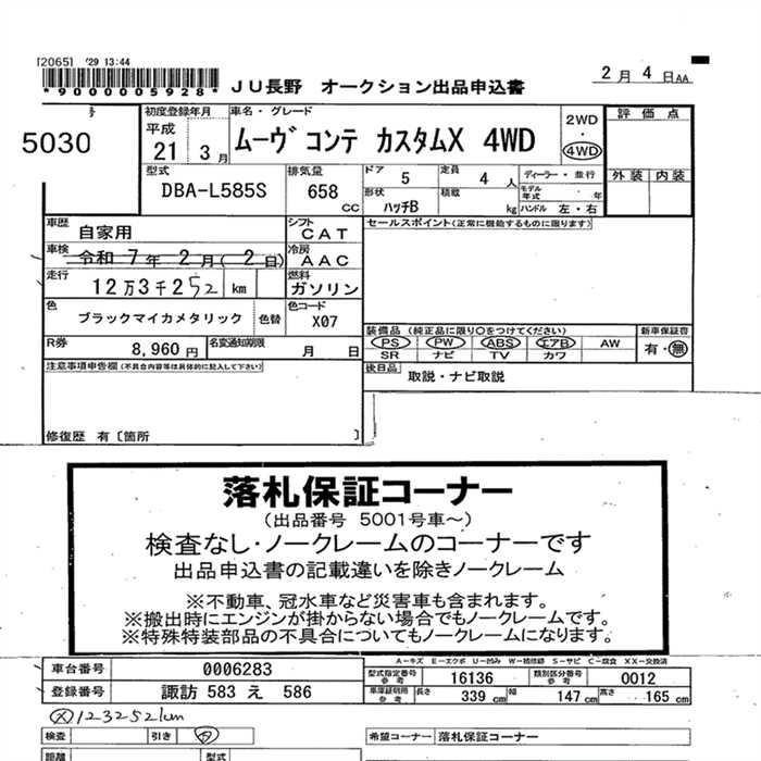 DAIHATSU MOVE CONTE 4WD CUSTOM X - лот 5030
