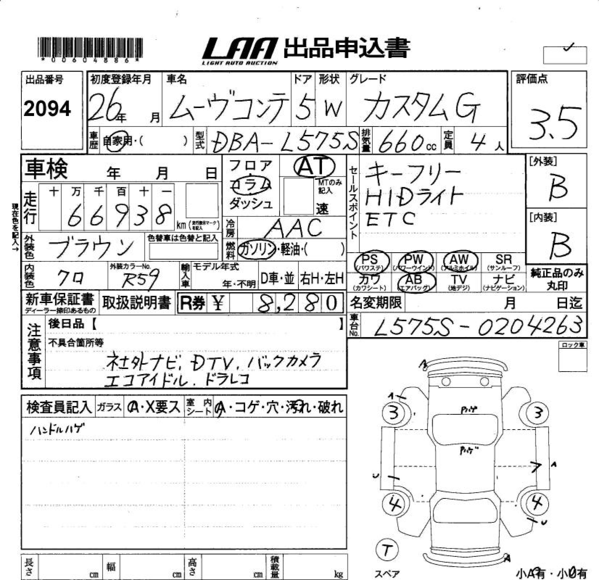 DAIHATSU MOVE CONTE CUSTOM G - лот 2094