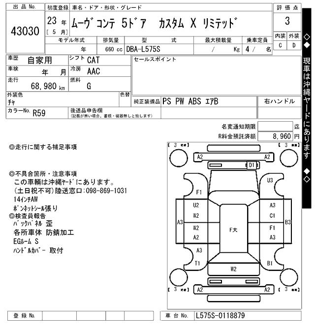 DAIHATSU MOVE CONTE CUSTOM X LIMITED - лот 43030
