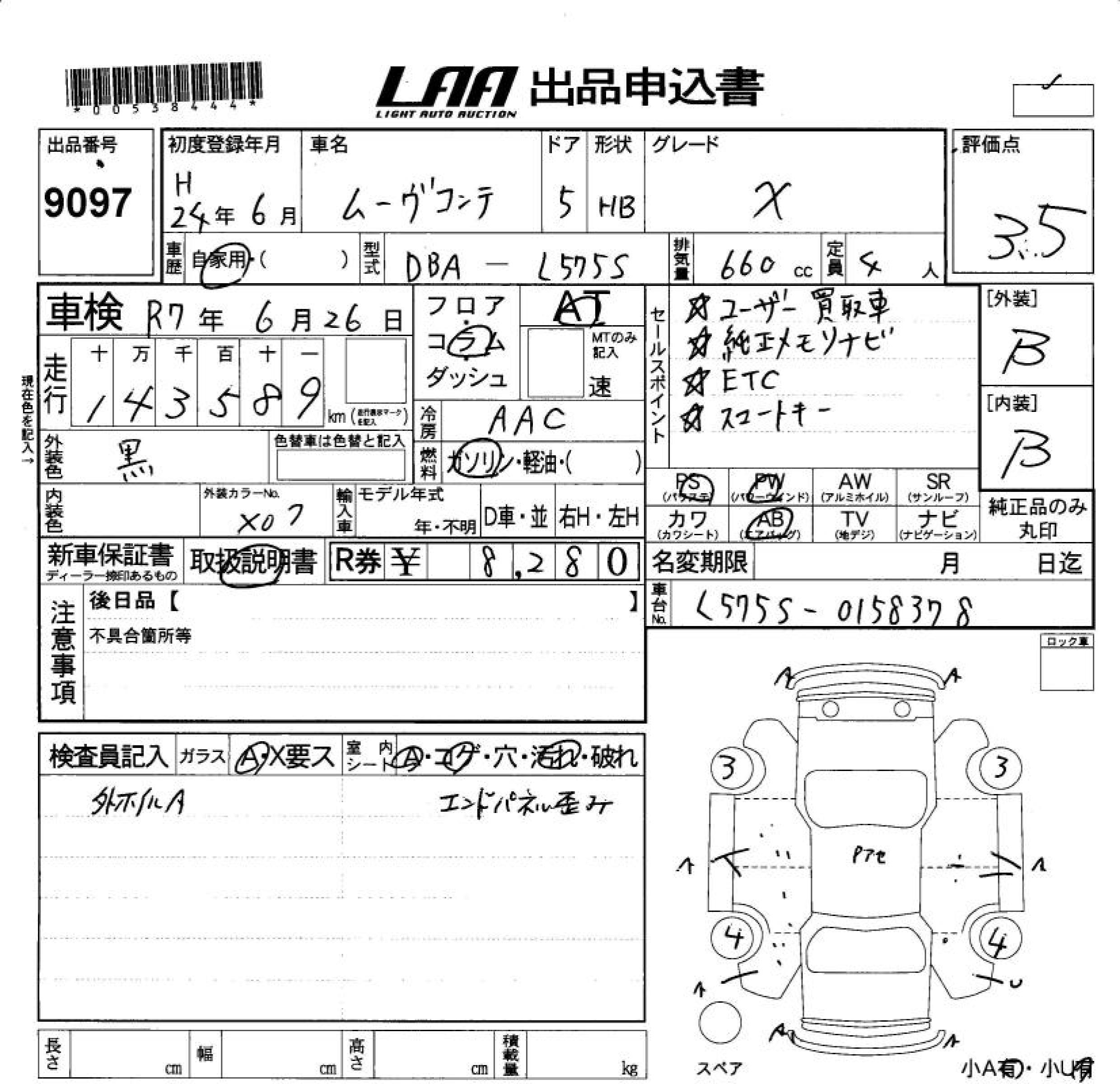 DAIHATSU MOVE CONTE X - лот 9097