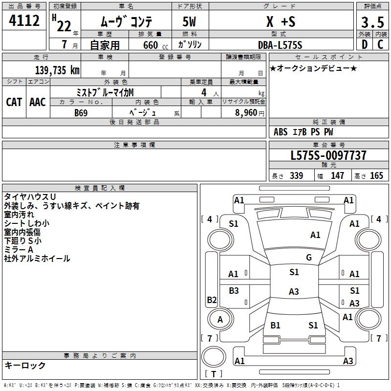 DAIHATSU MOVE CONTE X +S - лот 4112