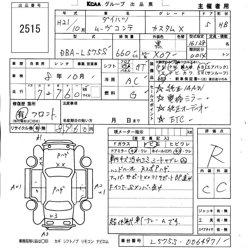 DAIHATSU MOVE CONTE CUSTOM X - лот 2515