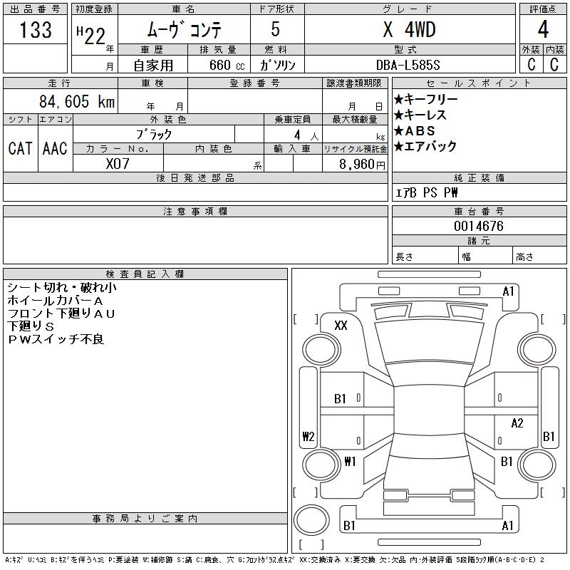 DAIHATSU MOVE CONTE X 4WD - лот 133