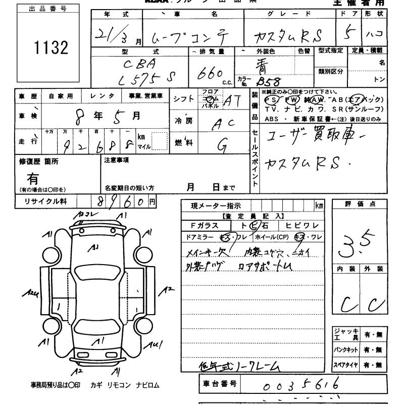 DAIHATSU MOVE CONTE CUSTOM RS - лот 1132