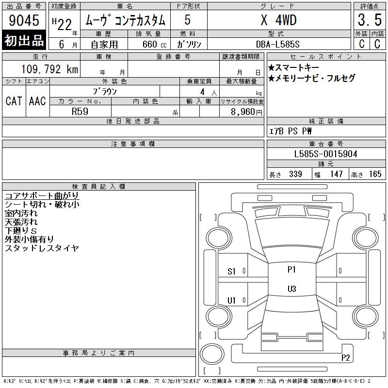 DAIHATSU MOVE CONTE X 4WD - лот 9045