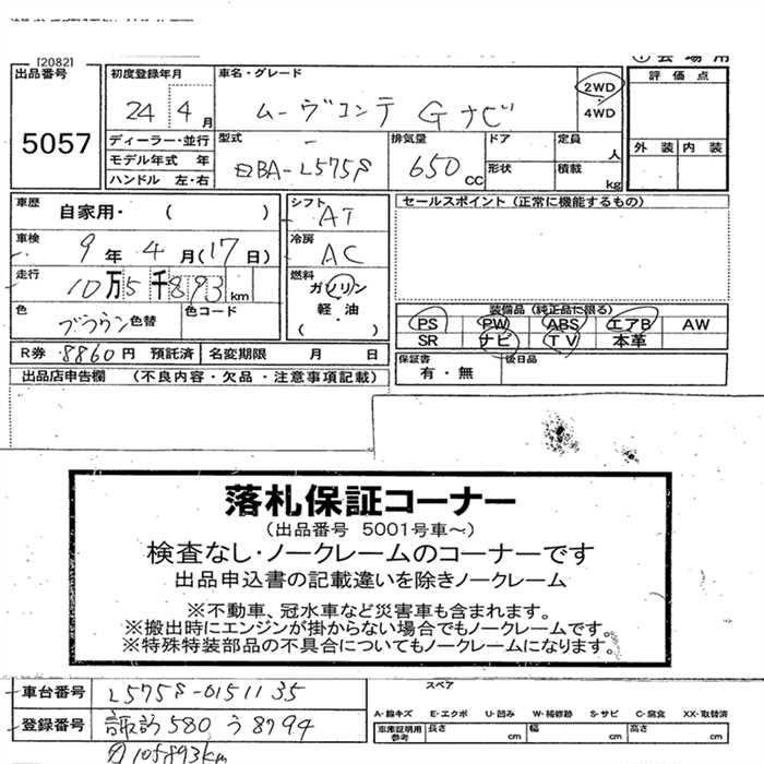 DAIHATSU MOVE CONTE G NAVIGATION - лот 5057