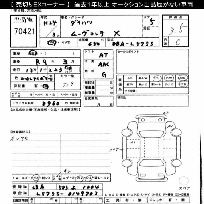 DAIHATSU MOVE CONTE X - лот 70421