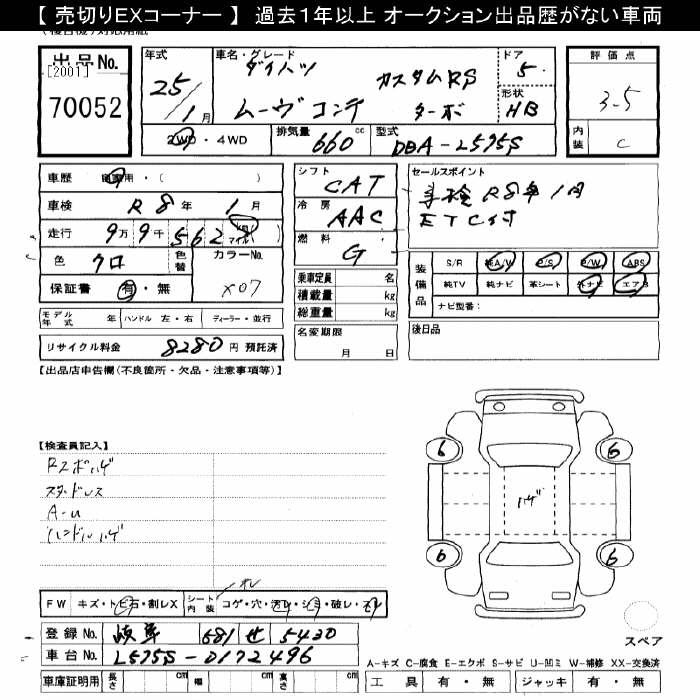 DAIHATSU MOVE CONTE CUSTOM RS TURBO - лот 70052