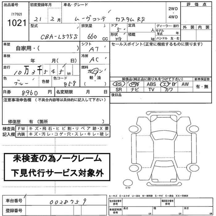 DAIHATSU MOVE CONTE CUSTOM RS - лот 1021