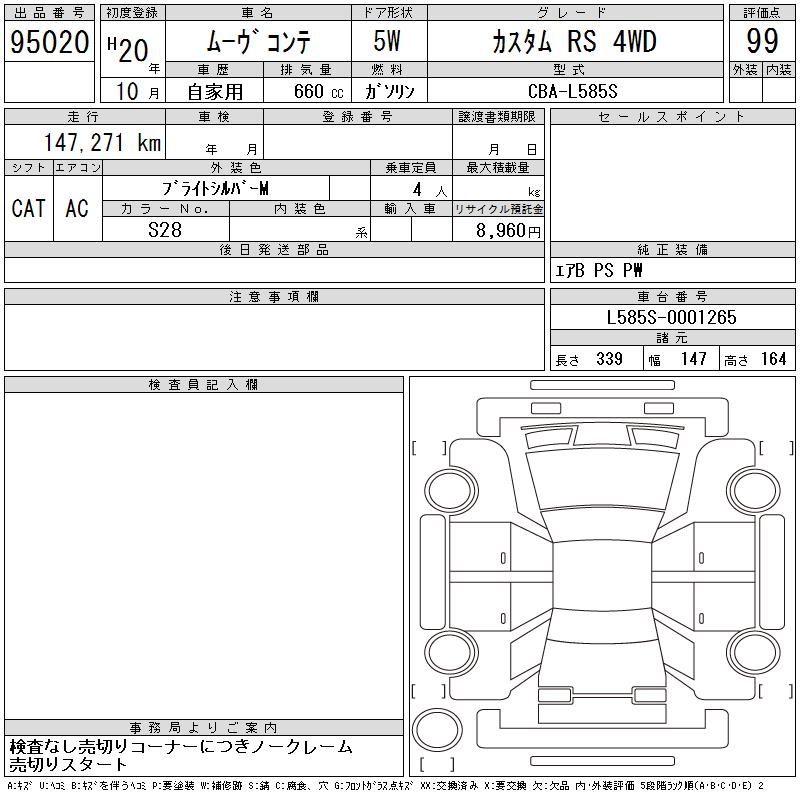 DAIHATSU MOVE CONTE CUSTOM RS 4WD - лот 95020