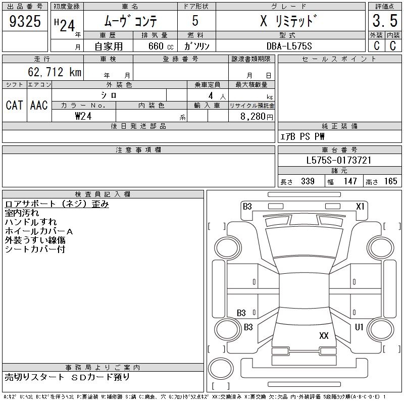 DAIHATSU MOVE CONTE X LIMITED - лот 9325