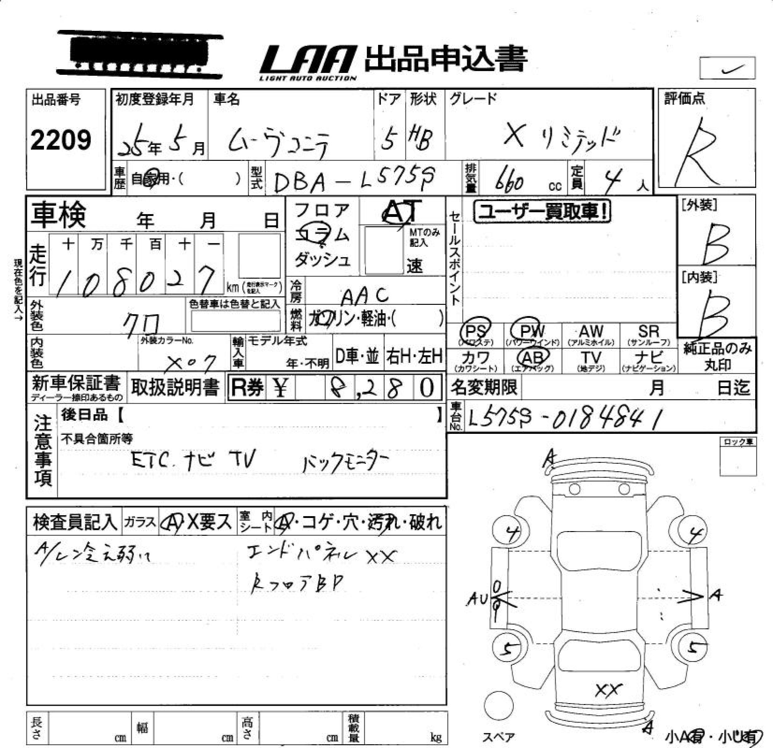 DAIHATSU MOVE CONTE X LIMITED - лот 2209