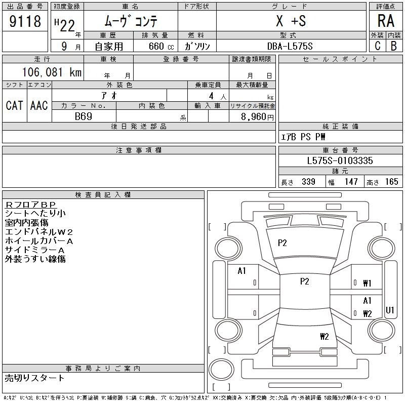 DAIHATSU MOVE CONTE X +S - лот 9118