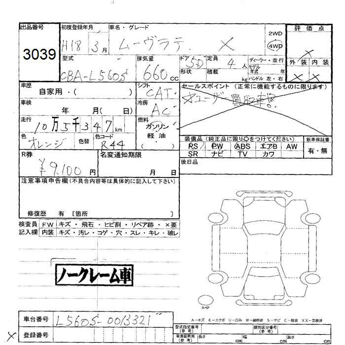 DAIHATSU MOVE LATTE 4WD X - лот 3039