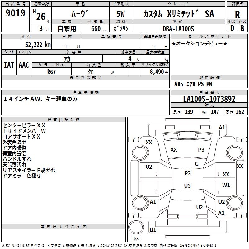 DAIHATSU MOVE CUSTOM X LIMITED SA - лот 9019