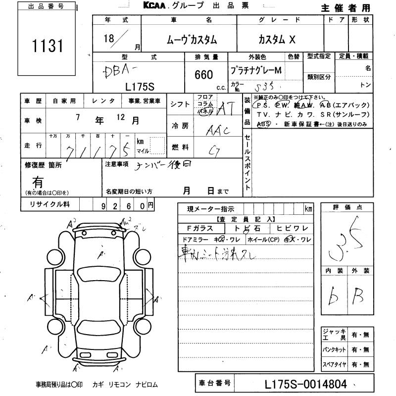 DAIHATSU MOVE CUSTOM X - лот 1131
