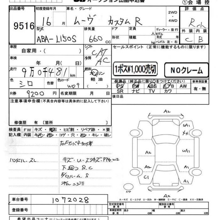 DAIHATSU MOVE CUSTOM R - лот 9516