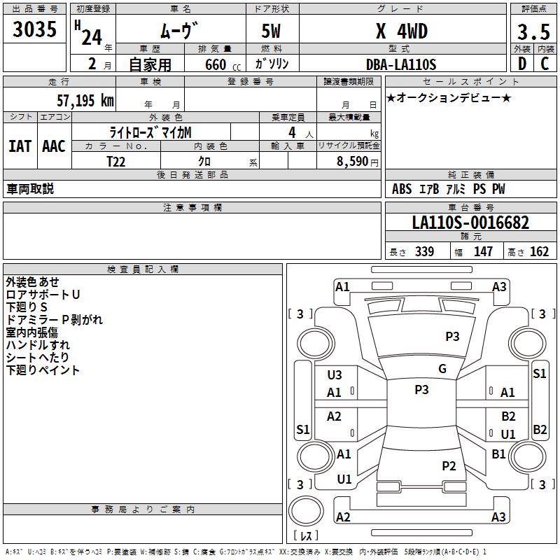 DAIHATSU MOVE X 4WD - лот 3035