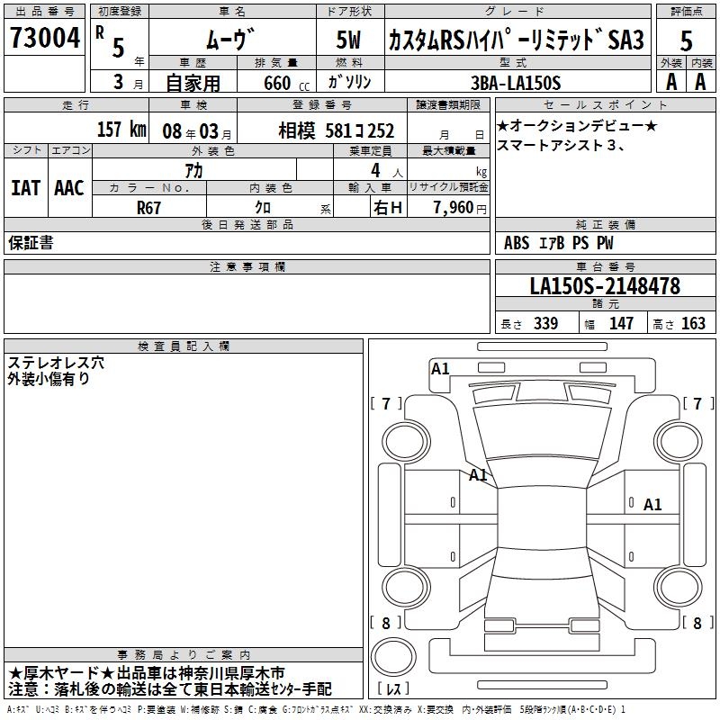 DAIHATSU MOVE CUSTOM RS HYPER LIMITED SA3 - лот 73004