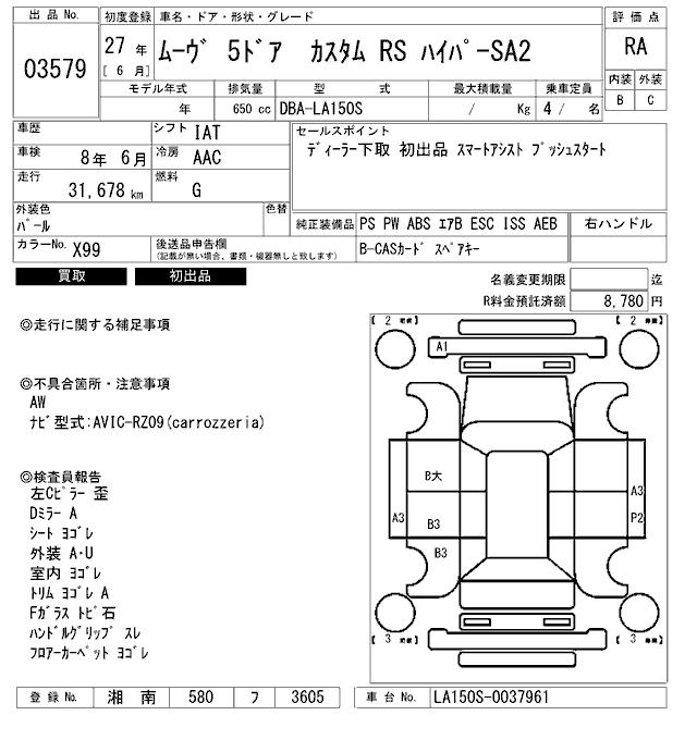 DAIHATSU MOVE CUSTOM RS HYPER SA2 - лот 3579
