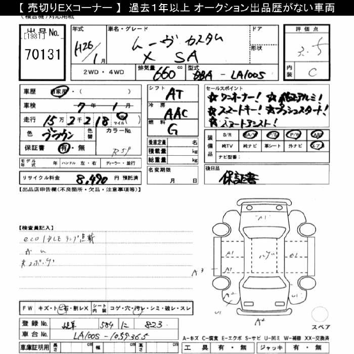 DAIHATSU MOVE CUSTOM X SA - лот 70131