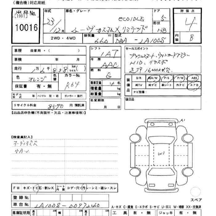 DAIHATSU MOVE CUSTOM X LTD - лот 10016