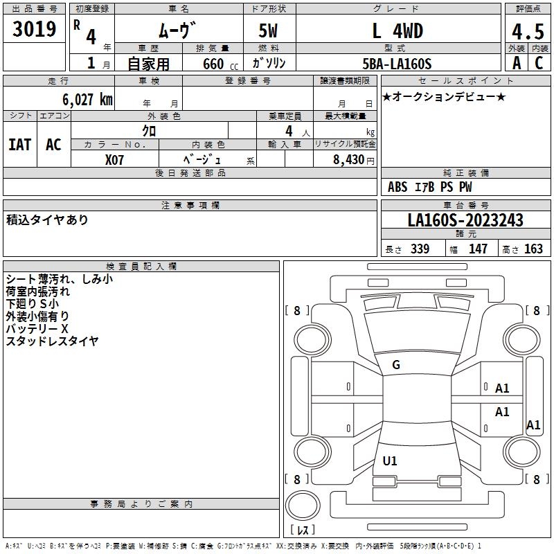 DAIHATSU MOVE L 4WD - лот 3019