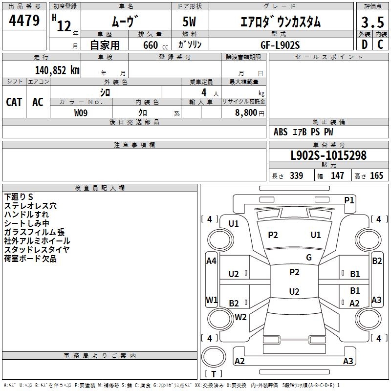 DAIHATSU MOVE AERODOWN CASTOM MANY M - лот 4479