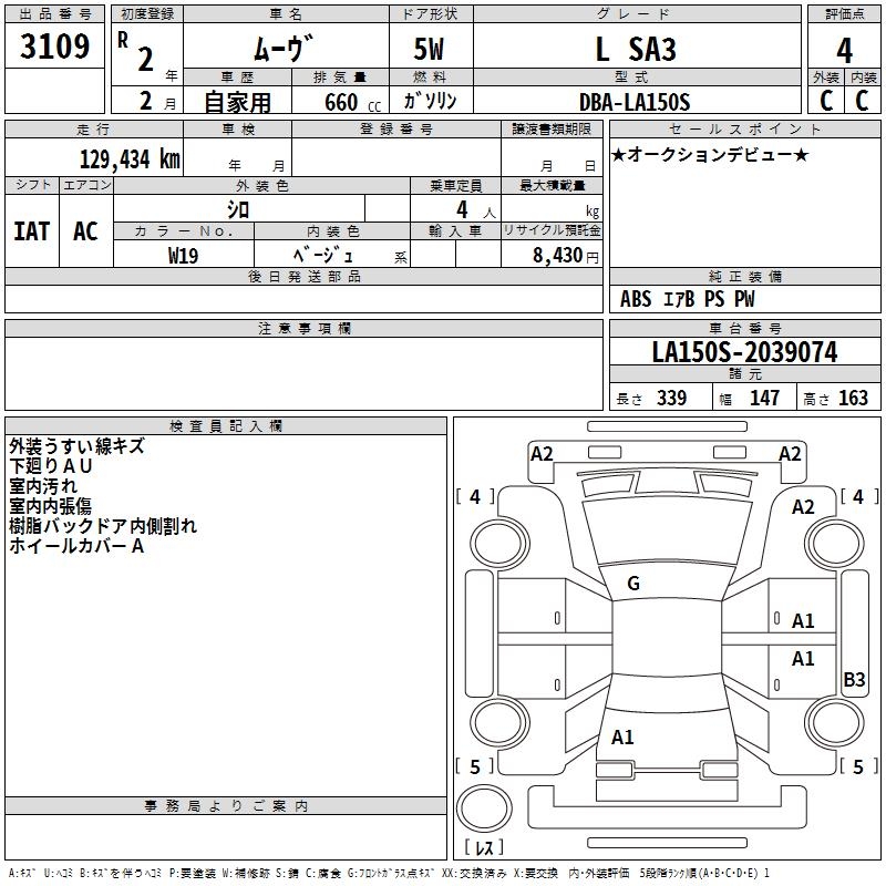 DAIHATSU MOVE L SA3 - лот 3109