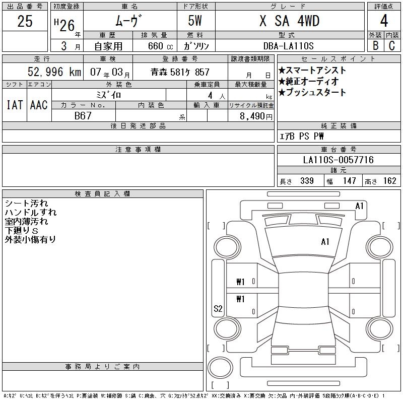 DAIHATSU MOVE X SA 4WD - лот 25